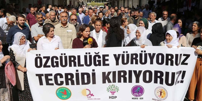 Mardin'in Kızıltepe ilçesinde DBP, TJA, HDP, MED-TUHADFED ve MEBYADER tarafından düzenlenen yürüyüş için Özmen Parkı’nda bir araya gelindi. Yürüyüş öncesi kentin birçok noktası zırhlı araçlarla ablukaya alındı. Parkta toplanan kitle polisler tarafından dağıtılmak istendi. Ancak kitle, "Bijî Serok Apo" sloganı ve alkışlar eşliğinde yürüyüşe geçti. Kitlenin yürüyüşe başlamasıyla birlikte polisler sokaklarda bariyerler kurdu. Aralarında HDP Parti Sözcüsü Ebru Günay ve HDP Mardin Milletvekili Pero Dündar'ın da olduğu grup ile polisler arasında tartışma yaşandı. Bu sırada farklı bir sokaktan başka bir grup yürüyüşe devam etti. Yürüyüşte sık sık "Bijî Serok Apo", "Bijî berxwedana zindanan" ve "Jin, jiyan, azadî" sloganları attı. Yürüyüş sonrası konuşan HDP Parti Sözcüsü Ebru Günay, tecrit politikalarına karşı özgürlük taleplerinden geri adım atmadıklarını vurguladı. Sözleri sık sık “Bijî Serok Apo” sloganlarıyla kesilen Günay, “Özgürlük için bedel ödeyen, gönlünü özgürlüğe yatırmış milyonların önünde kimse duramaz. Nasıl ki 24 yıldır İmralı’da bütün politikalarınıza rağmen sonuç alamadınızsa bugün de ne bariyerlerinizle ne polis şiddetinizle, ne baskılarınızla, ne gözaltılarınızla, ne tutuklamalarınızla, ne de zindanlarla Kürt halkını korkutabilirsiniz. Bizler mutlaka ve mutlaka bu topraklara demokrasiyi ve özgürlüğü getireceğiz. Çünkü şimdi herkes ‘Jin jiyan azadî’ diyor. Çünkü herkes şimdi özgürlük için özgürlüğe yürüyor. Ya özgürlük ya özgürlük” şeklinde konuştu. Açıklama sloganlar eşliğinde sona erdi.