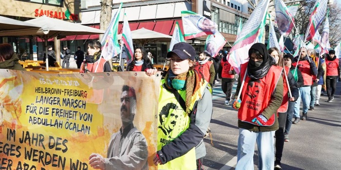 - Almanya’nın Heilbronn kentinden Kürt Halk Önderi Abdullah Öcalan’ın özgürlüğü için başlayan Uzun Yürüyüş 4. gününde. Gençler, “Bu yürüyüşte birbirimizden güç alıyoruz. Önderliğimiz özgür olana kadar bu mücadeleye devam edeceğiz” dedi.