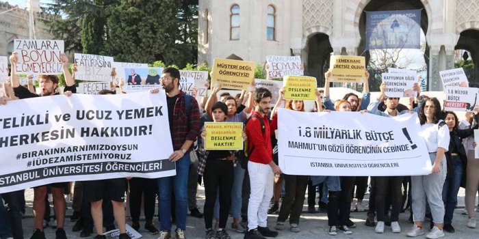 - Yemeklere yapılan yüzde 71’lik zammı protesto eden İstanbul Üniversitesi öğrencileri, temel haklarının gasp edildiğini söyleyerek, zamların geri çekilmesini istedi.