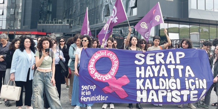 Duruşma sonrası feministler ve avukatlar adliye önünde “Serap hayatta kaldığı için hapiste” pankartı açarak “Erkek adalet değil, gerçek adalet” sloganlarıyla açıklama yaptı. Berfin Atlı, Serap’ın 1,5 yıldır tutuklu olduğunu ve “ölmediği için cezalandırıldığını” ifade etti. İSTANBUL