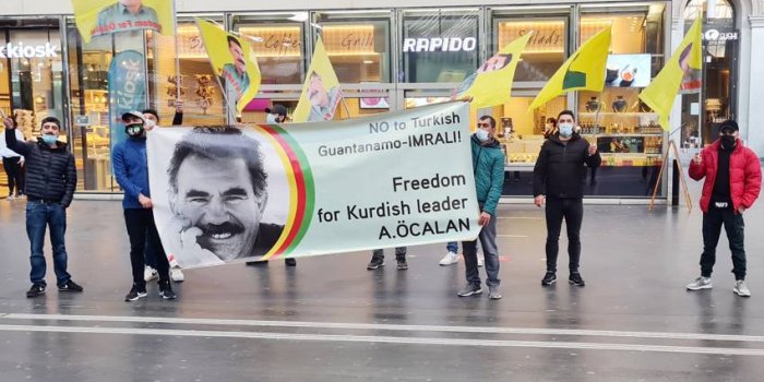 Eylemde Abdullah Öcalan ile avukat ve aile görüşmesinin de bir an önce gerçekleşmesi gerektiği belirtildi. İngilizce, “Türk Guantanamo İmralı’ya hayır! - Kürt lider Abdullah Öcalan’a özgürlük” yazılı pankartı açan gençler, tren istasyonunun kalabalık olduğu saatte eylemlerini gerçekleştirdi. Almanca ve Kürtçe, “Bijî Serok Apo”, “Freiheit Für Ocalan”, sloganlarının atıldığı eylemde Türk faşizminin protesto edildi, Öcalan’ın özgürlüğü talep edildi. Eylem sloganlarla sona erdi.
