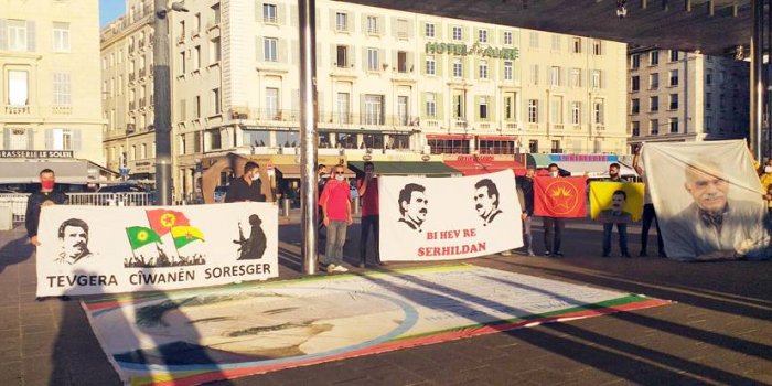 Marsilya’da hamle çerçevesinde Vieux-Port Meydanı’nda bilgilendirme standı açıldı. Birçok dilde “Öcalan’a özgürlük” yazılı pankartları, Kürt Halk Önderi,PKK ve TCŞ flamaları açıldı.