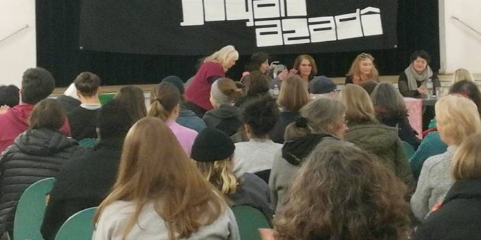 İran adına katılan panelist Tuba Kamangar, kadınlar olarak rejimin baskılarına baş kaldırdıklarını belirterek mücadelenin sürdüğünü vurguladı. Türk devletinin Kuzey-Doğu Suriye’ye saldırılarını değerlendiren Kamangar, Kurdistan’daki kadının öz gücünün tüm Ortadoğu’yu korkuttuğunu söyledi. Kamangar, Türk devletinin saldırılarına karşı ayrıca Rojava’nın hayatta kalma mücadelesi verdiğini de dile getirdi.