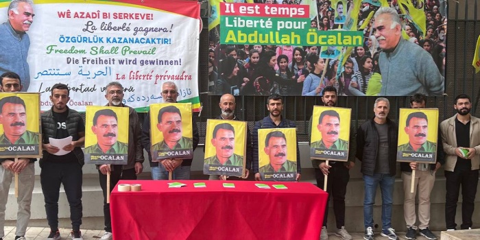 Fransa’nın Marsilya kentinde Avrupa Parlamentosu’nun Marsilya Bürosu önünde bir stand açıldı. Kürt Halk Önderi Abdullah Öcalan fotoğrafları ve özgürlük talebi içeren pankartlar asıldı. Eyleme katılan Veysel Piro, Kürt Halk Önderi’nden 32 ayı aşkın süredir haber alınamadığının altını çizerek, “Avrupa’nın 74 merkezinde 10 Ekim’de başlatılan hamleye biz de AP önünde yaptığımız eylemle katıldık. Üç gün boyunca burada nöbet tutacağız. İsteğimiz sadece tecridin kırılması değil, fiziki özgürlüğünü talep ediyoruz” dedi. Bu eylemlerin sürekliliğinin önemine vurgu yapan Piro,“Avrupa’da, Kurdistan’ın dört parçasında tüm Kürtler ayakta olmalı. Kürtlerin özgürlüğü Önder Apo’nun özgürlüğüne bağlı” mesajı verdi.