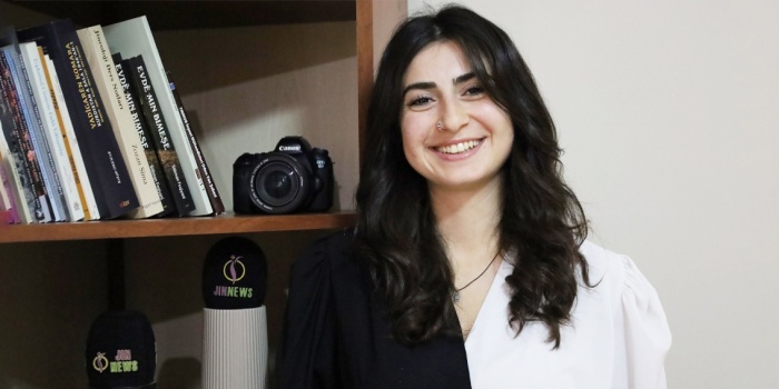 Türk devleti ve Suriye Milli Ordusu (SMO) çetelerinin Kuzey ve Doğu Suriye’ye yönelik saldırılarını takip ettikleri esnada, SİHA ile katledilen gazeteciler Cihan Bilgin ve Nazım Daştan için kurulan taziyelere kitlesel ziyaretler devam ediyor. Önceki gün, Tevgera JinênAzad (TJA) öncülüğünde bir araya gelen kadınlar, gazeteci Cihan Bilgin için Mêrdîn’inMîdyad ilçesinde kurulan taziyeyi kitlesel bir yürüyüşle ziyaret etmek istedi. Kadınların yürüyüşü engellenmek istendi ancak ısrarları üzerine yürüyüş gerçekleştirildi. Bu sırada bir polis, JINNEWS muhabiri Öznur Değer’e yönelik cinsiyetçi söylemde bulundu. Öznur Değer de bu duruma tepki gösterdi.