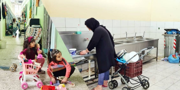 Ortak olarak kullanılan tuvalet, banyo ve mutfak, pislik içinde. İnsani yaşam standartlarının çok altında olan kampta; kapı, pencere, musluk, fayans vs. kırık ve kullanılmaz bir halde. Çarşaflar, battaniyeler kapı olarak kullanılıyor. Kamp içinde ve özellikle dışında çöpler taşmakta ve yığın halinde birikmektedir. Birçok mültecinin vücudunda böcek ısırık izleri bulunmaktadır.