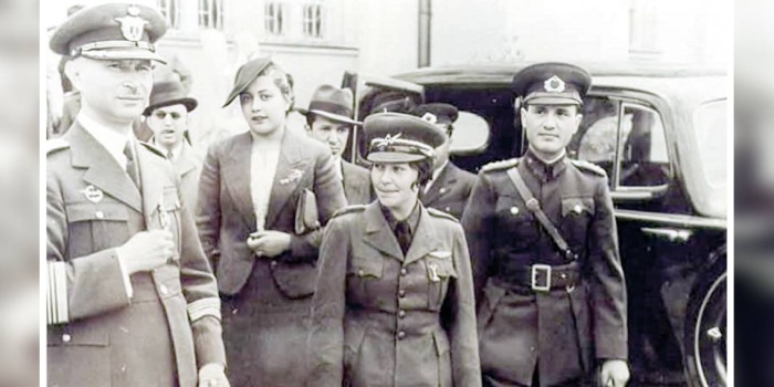 - Elimizde Nazi pilotları ile Sabiha Gökçen'in bir fotoğrafı var. Fotoğrafta görüldüğü kadarı ile Alman pilotlar oldukça rahat neredeyse ev sahibi intibası bırakıyor. Sabiha Gökçen’in sağında Hans Joachim Herrmann, solunda Martin Harlinghausen görülüyor.