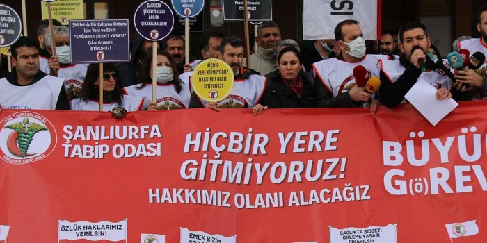 Sağlıkçılar Mehmet Akif İnan Eğitim ve Araştırma Hastanesi önünde açıklama yaptı. Açıklamaya Urfa Tabip Odası, KESK Urfa Şubeler Platformu üyeleri, İHD, ÖHD, HDP Urfa Milletvekili Ayşe Sürücü ve il yönetimi, EMEP, Saadet Partisi, DEVA, CHP, Gelecek Partisi ve çok sayıda kişi katıldı.