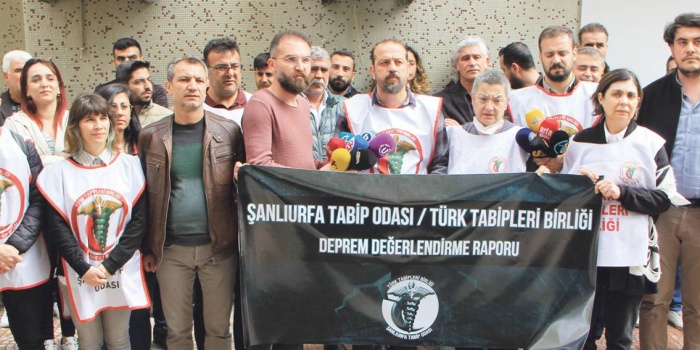 TTB Merkez Konseyi Başkanı Şebnem Kurur Fincancı'nın katılımıyla Urfa Tabip Odası önünde de basın açıklaması yapıldı. Prof. Fincancı, ne yazık ki bu olağanüstü durumun, olağan dönemdeki sorunları katmerleştirerek artırdığını belirterek, "Biz zaten sağlıkla ilgili ciddi sorunlarla boğuşuyorduk. Geçen sene 14 Mart'ı eylemlerle geçirdik, emek bizim söz bizim, demiştik. Emeğimizi değersizleştiren sağlığı bir tüketim nesnesine dönüştüren bir sisteme karşı mücadele ediyoruz. O zaman da söyledik şimdi de söylüyoruz; aslında bu depremde, enkaz altında kalan, yaratmaya çalıştıkları, allayıp pulladıkları sağlık sistemi oldu" dedi.