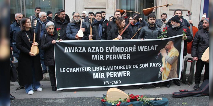 Paris’te Evîn Goyi (Emîne Kara), Mîr Perwer (Mehmet Şîrîn Aydin) ve Abdurrahman Kızıl’ı katleden kişinin “ırkçı saikle” tutuklanmasına tepki gösteren Kurdistanlılar, saldırının “terör saldırısı” olarak değerlendirilmesini ve bu katliamın emrini verenlerin açığa çıkarılmasını istiyor. TEV-ÇAND’lı sanatçılar bugün Fransa Kültür Bakanlığı önünde eylemdeydi. Enstrümanlarıyla bakanlık önünde toplanan sanatçılar, katledilen arkadaşları Mîr Perwer’in fotoğraflarını taşıdı. Sanatçı Deza Amed yaptığı konuşmada, Türk devletinin Kürtçe, Kürt müziğine yönelik baskıları nedeniyle birçok sanatçının sürgüne çıkmak zorunda kaldığını vurgulayarak, “Mîr Perwer de bunlardan birisiydi. Faşist terör onu Avrupa’da takip etti ve katletti. Bu katliam aydınlatılsın. Kürt halkının, sanatçılarının güvenliğini sağlayın” çağrısında bulundu.
