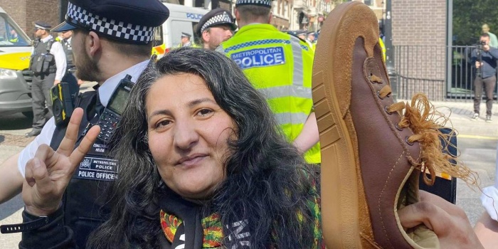 Berîtan yaklaşık 17 yıldır İngiltere’de yaşasa da, yüreği ve bilinci Kürdistan’dan yana. Öyle ki, soğuğa, yağmura aldırış etmeden yanına aldığı 3 çocuğu ile birlikte O’nu Kürtler için yapılan tüm protestolarda görmek mümkün. Türk devletinin işgal saldırılarına ortaklık eden KDP hükümetinin Başbakanı Mesrur Barzanî’ye karşı 20 Nisan’da Kraliyet Uluslararası İlişkiler Enstitüsü (Chatham House) önünde gerçekleşen protesto gösterisinde de elindeki mekap ayakkabı ile dikkatleri üzerine çekti.