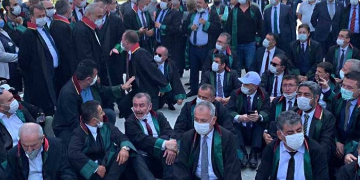 Avukat Gülizar Tuncer ise yasaların hiçe sayıldığını belirterek, şunları ifade etti: “Yasaya aykırı bir genelgeyle karşı karşıyayız. Bu yasal zorunluluğu bir genelge ile ortadan kaldırdılar. Buradaki esas amaç salgının yaratacağı tehdidi engellemek değil. Gerçek amaç, çoklu baro düzenlemesi ile yapmaya çalıştıkları baroları bölerek demokratik muhalefeti sindirmek burada esas amaç bu.”
