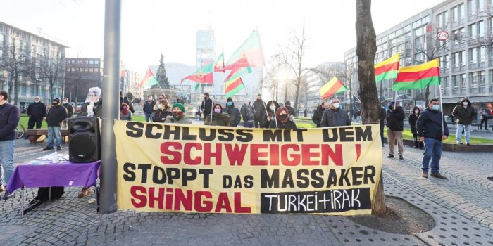 Köln Demokratik Kürt Toplum Merkezi ve Viyan Kadın Meclisi öncülüğünde gerçekleştirilen eylemde Şengal'de Êzîdîleri katliama terk edenlerin yeni bir katliam planladığı ifade edilerek Kürt halkının buna izin vermeyeceği belirtildi.