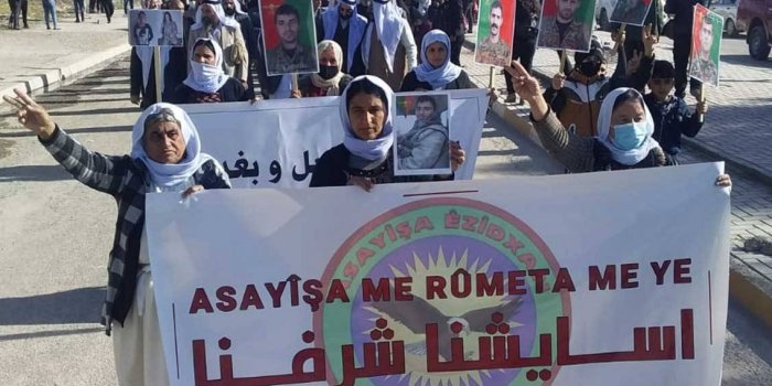 Şengal merkezinde başlayan yürüyüş Êzidxan Merkez Asayişi’nde son buldu. Yürüyüşe katılan kitle, Asayiş üyelerine desteklerini sundu.