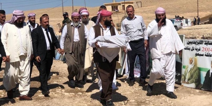 Ellerinde katledilenlerin fotoğraflarını taşıyan yüzlerce yurttaş, toplu mezarların açılacağı alana geldi. Şengal Özerk Yönetimi heyeti de toplu mezarların açıldığı Qinê köyünde hazır bulundu.