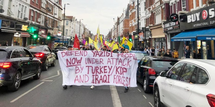 Kürdistanlılar, Kazımi hükümet güçlerinin Şengal'e yönelik saldırısının faşist Türk devletinin ve onun işbirlikçisi Barzani ailesinin Kürt soykırımı temelinde gerçekleştirdiği işgal saldırılarından bağımsız olmadığına dikkat çekti.