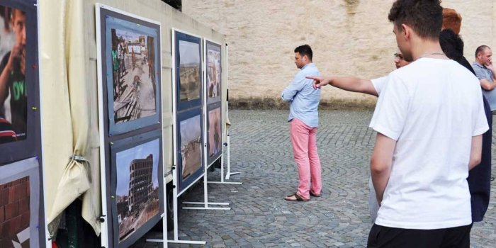 Soykırım sırasında bölgeye ilk gidenlerden ve resimler çeken Aslan Kızılhan, Bielefeld Mala Êzîdîyan adına Gernus Ibrahim ve DGB sözcüsü aynı zamanda 'Kürdistan‘a Barış ve Umut İnisiyatifi' aktif üyelerinden Friedel Böhse de birer konuşma yaptı. Etkinlik atılan sloganlarla sona erdi.