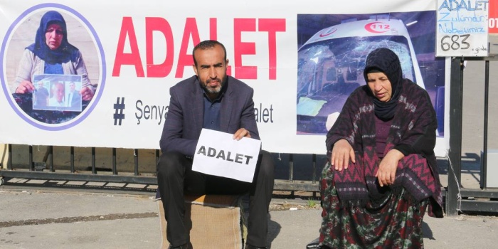 Riha'nın Pirsûs (Suruç) ilçesinde, 14 Haziran 2018'de AKP Milletvekili İbrahim Halil Yıldız’ın koruma ve yakınları tarafından eşi ve iki oğlu katledilen Emine Şenyaşar ile saldırılardan yaralı kurtulan oğlu Ferit Şenyaşar'ın 9 Mart 2021’de başlattığı Adalet Nöbeti, 684. gününde. Pirsûs ilçesindeki evinden Urfa Adliyesi önüne gelen Emine Şenyaşar ve Ferit Şenyaşar, dün de nöbete devam etti.