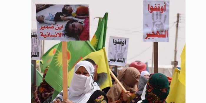 - Hesekê Kantonu’na bağlı Tiwêna ilçesinde bulunan Waşûkanî Kampı’daki yüzlerce Serêkaniyêli göçmen, işgalci Türk devletinin saldırılarını ve sömürge evlerinin kurulmasını kınamak için bir protesto eylemi düzenledi.