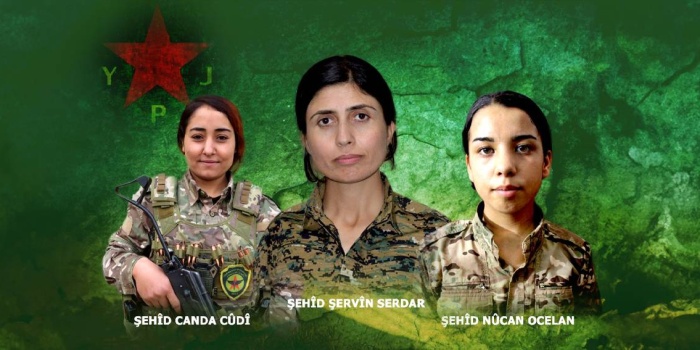 - Bir an olsun tereddüt etmeden ve korkmadan direnişçi ruhlarıyla topraklarının işgal edilmesine siper oldular. Kazanımlarını korumak ve çocuklara özgür bir gelecek bırakmak için yoldaşlarının mirasına sahip çıktılar. Devrimle güzellik açan Şervin, Canda ve Nûcan Türk devletinin SİHA saldırısında şehit düştü.
