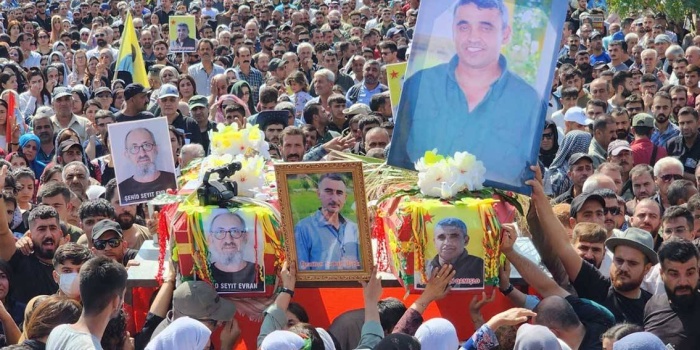 Qamişlo’da binlerce kişinin katılımıyla 22 Eylül’de şehit düşen gazeteci-yazar Seyit Evran ve 17 Eylül’de Türk SİHA saldırısı sonucu şehadete ulaşan YPG komutanlarından Aslan Qamişlo için cenaze töreni düzenlendi.
