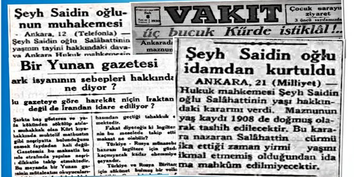 21 Temmuz 1930 tarihli Vakit gazetesi Kahire’de çıkan El-Ahram gazetesine dayandırdığı haberinde içinde Şeyh Selahaddin’in de geçtiği birçok Kürt şahsiyetinden bahseder. ‘Kürt isyanı nerede kararlaşmış?’ başlığı ile verilen haberin içeriği şöyle: