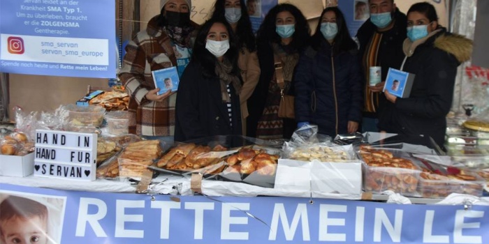 İstanbul’da yaşayan Fatma ve Nedim Danış çiftinin 12 aylık bebekleri Şervan Danış, Spinal Müsküler Atrofi (SMA) Tip 1 hastası. Dünyada 10 binde bir görülen SMA hastalığının tedavi ise çok masraflı. Evde, boğazına ve karnına bağlanan hortumlar sayesinde yaşayan Şervan bebeğin, “Zolgensma” adlı ilacı alması gerekiyor. Şervan bebeğe maddi destekle bulunmak isteyen Hamburg’daki bir grup genç, yemek standı açarak yardım topladı. Şternschanze semtinde açılan yemek standına gelen birçok insan küçük Şervan'ın yaşatılması için maddi yardımda bulundu. Stantta bulunan ve standı ziyaret edenler, Şervan’ın hastalığı hakkında konuştu.