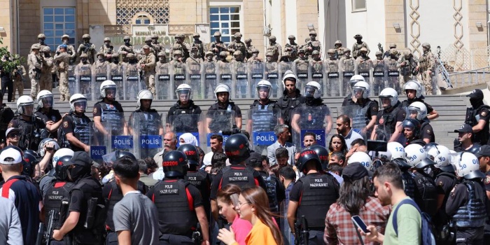DEM Parti Eşbaşkanı Tülay Hatimoğulları, “Kayyum atanması, demokrasiye, Kürtlere darbedir. Valilik önündeki asker fotoğrafı bir darbe görüntüsüdür" dedi.