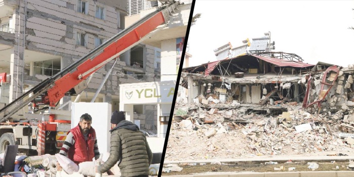 Elbistan’da ilk olarak enkazlar beni karşıladı. Havadaki kasvet ve enkazlar, yol yürüdükçe artıyordu. Servisten birlikte indiğim bir anne ve baba, çocuklarını Ankara’ya bırakıp ağır hasarlı evlerinde bulunan eşyalarını almak için geri dönmüş; “Çocukları kurtardık, ona şükrediyoruz” diyordu. Yürüdüğümüz esnada “Bak bu Elbistan’ın en eski binalarından. Yirmiler Apartmanı” diye gösterilen binada hasar var, ancak yıkılmamış. Hemen yanında bulunan ve 20 senedir yapıldığını söyledikleri binaların ikisi ise yıkılmış.