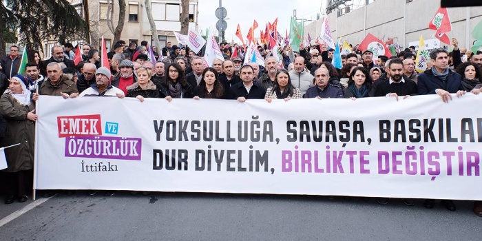 - Muhalefet politik olarak, Erdoğan'ın faşist dikta rejimine karşı birleşebilir. Muhalefet için birliğin nesnel koşulları olduğu gibi, ayrı ayrı yürümenin bir sonsuz felakete yol açacağı açıktır.