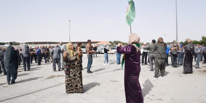 Cizîrê Kantonu’nun Qamişlo, Amûdê, Til Hemîs ve Tirbespiyê kentlerinden yüzlerce yurttaş, bu sabah saatlerinde Tişrîn’deki nöbet direnişini devralmak amacıyla baraja doğru yola çıktı. Yüzlerce yurttaş, büyük bir direniş coşkusuyla halay çektikten sonra konvoy halinde yola devam etti.