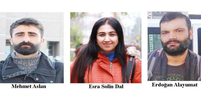 - Gözaltındaki 9 gazeteciden Mehmet Aslan, Erdoğan Alayumat ve Esra Solin Dal tutuklama istemiyle mahkemeye sevk edildi.