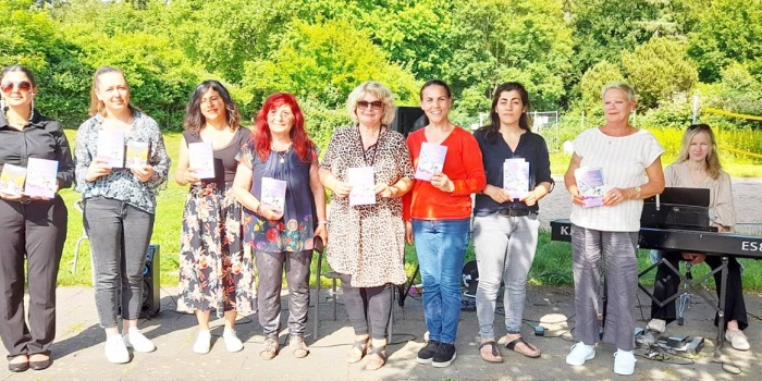 Utamara yönetici ve çalışanları, öykülerini yazan kadınlarla birlikte çok sayıda kadının katılımıyla Bürgerpark’da düzenlenen etkinlikte, yazarlar kendi yazdıkları öykü ve şiirleri okudu.