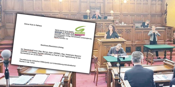 Yeşiller Partisi milletvekillerinin Viyana Belediye Meclisi’nden “Kobanê tutsakları”nın serbest bırakılmasını savunmasını ve Türkiye’deki insan hakları ihlallerine karşı net bir tavır almasını talep ettiği karar önergesi kabul edildi.