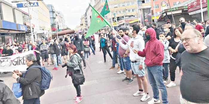 Faşistlerin saldırıları ardından “Saldırıya karşı demokratik direniş” sloganıyla başlayan protestolar kapsamında Perşembe akşamı da kitlesel bir miting ve yürüyüş gerçekleştirildi. Avrupa Kadın Platformu’nun organize ettiği eyleme DKTM, DİDF, MLKP, SKB, ADHK, Komintern, Platform Radikale Linke, PYD üye ve aktivistleri de katıldı. Eyleme katılan Yeşiller Partisi eski Milletvekili Berivan Aslan faşist saldırılara tepki göstererek, “Erdoğan şunu iyi bilsin ki; burası Türkiye değil. Burada kendi güdümündeki faşist ırkçı çeteleri örgütleyerek, Kürtler ve dostlarını yıldırarak, sindirerek, diz çöktüreceğini zannediyorsa yanılıyor” dedi. Polisin tutumunu eleştirerek eylemcilerin fişlenmesine tepki gösteren Aslan, “Fişlenecek birileri varsa o da Erdoğan’ın örgütlediği ırkçı, faşist ve gerici guruplar ve onların mensup olduğu dernek ve illegal kurumlardır” diye belirtti.