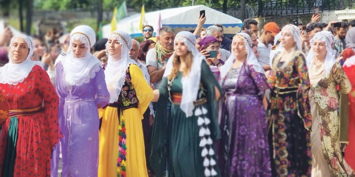 Siyasi birçok ismin katılım sağladığı festivalde diğer halklardan dostlar da var. Katliamlarlardan, baskıdan geçen ezilmiş halkların kadınları Stalingrad Meydanı’da Nazi direnişine direnen dönemin direnişçileri gibi başları dik.