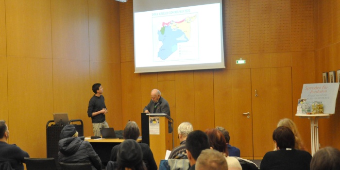 - Rojava ile dayanışma amaçlı düzenlenen etkinlikler kapsamında Herford Kresihaus salonunda düzenlenen seminerde konuşan gazeteci Tim Krüger, “Depremin yaşandığı şehirler Suriye, Türk rejimi ve çeteler tarafından ambargo altında” diyerek, yardımlar için Heyva Sor’u adres olarak gösterdi.