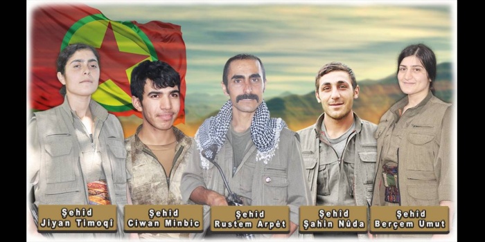 HPG Basın İrtibat Merkezi (BİM) tarafından dün yapılan yazılı açıklamada, gerillalar Berçem Umut (Suzan Duman /Colemêrg), Rustem Arpêt (Orhan Yakut / Wan), Şahin Nûda (Bedran Gökdemir / Mûş), Ciwan Minbic (Salih Tewfîq / Minbic) ve Dîlan Tunç’un (Jiyan Timoqî / Êlih) şehit düştükleri bildirildi.