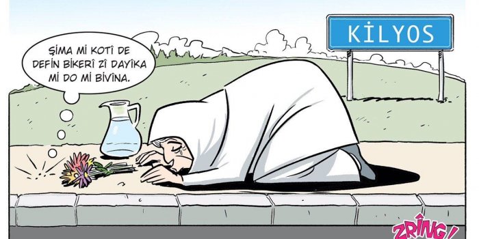 Aylık yayınına koronavirüs salgını nedeniyle ara veren Kürtçe çizgi dergisi Zrîng, 2017 yılında Bitlis’teki Garzan Mezarlığı’ndan çıkarılan ve gönderildikleri Adli Tıp Kurumu sonrası İstanbul Kilyos Mezarlığı’ndaki beton kaldırıma, plastik kutular içinde gömülen cenazeleri çizdi.